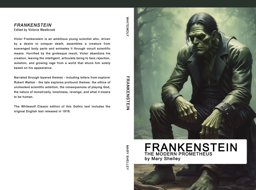 2019-10-01 – Frankenstein by Mary Shelley has been officially released as a part of the Whitewolf Classic collection. The Whitewolf edition of this classic text contains the original 1818 English text.
